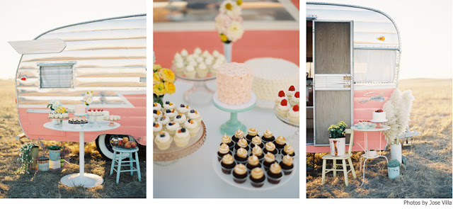 Enjoy Cupcakes is a gorgeous bakery in California but they have also refitted a retro caravan and can be hired for events where they will park up and lay beautiful tables with pedastol stands filled with gorgeous sweets and treats.