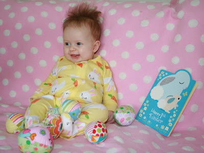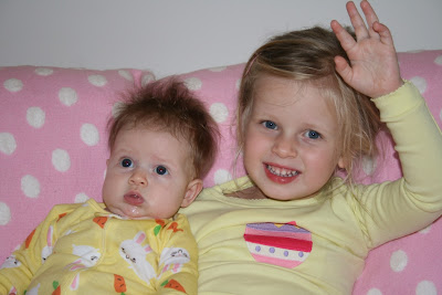 The girls got new Easter Pajamas after their bath on Thursday evening - Maisie had bunnies with carrots and Madeline had baby chicks with Easter eggs :)