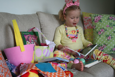 Maisie was pretty happy with her patchwork stuffed Easter eggs from Lilly-Dee Designs. The Easter Bunny left six at our house and six at Nana and Grandads house - the idea being the girls will have a dozen eggs to have pretend egg hunts with when they get older :)