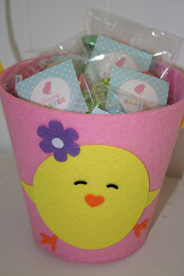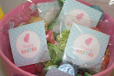 On Thursday we took some treats in to Maddy's Creche teachers. I made individual bags of mini Hershey bars which were wrapped in pastel Easter colours and popped a Happy Easter sign in the front which was a free printable from Three Little Monkeys Studio. The cute basket was from K-Mart.