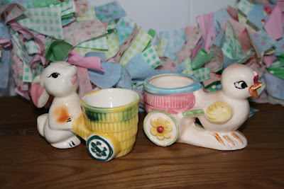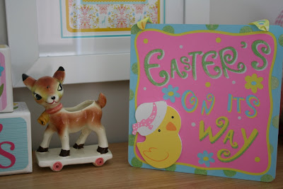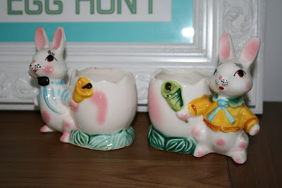 I've been collecting old 1950's and 1960's egg cups which I also included in the display. When the girls are older I'll use them on our Easter breakfast table but in the mean time they stayed up and out of the way from little fingers.