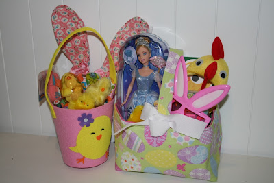 Once the girls were in bed I put together their Easter baskets. I got a bit carried away with Madeline's Easter treats this year and she ended up with two baskets. I like to collect bits and pieces through out the year as I see them on sale and pop them in the present cupboard for times like this :)