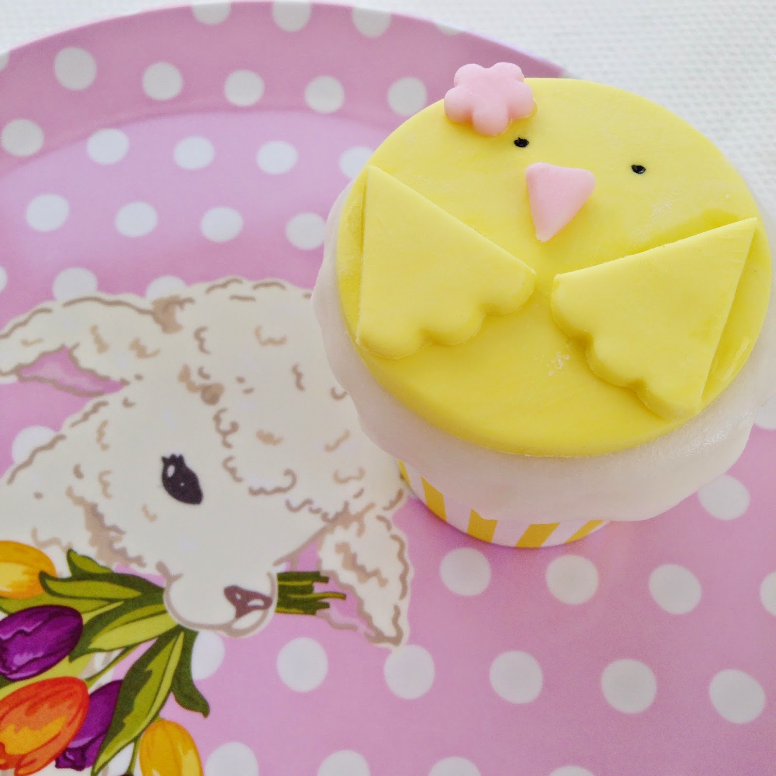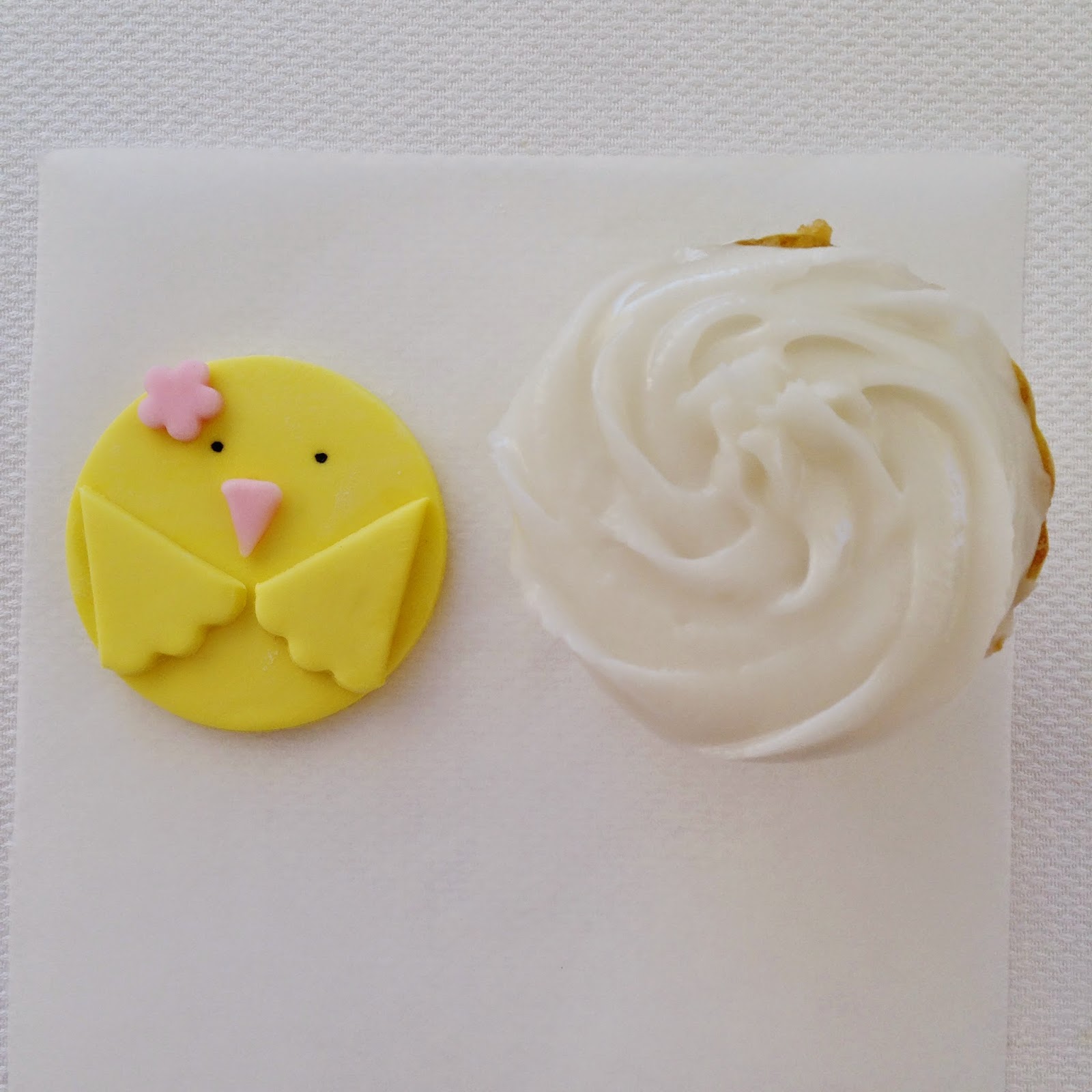 Either add a small dab of icing to the top of your cupcake or ice a big swirl and place your Easter chick topper on top. You're done!