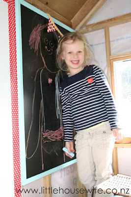 The whole thing only took an afternoon to put together and I was really looking forward to surprising the girls with this repurposed space. We recently got rid of a lovely big all-in-one wooden easel from our playroom as the girls never used it. Miss 5, who is a prolific artist, prefers to draw and craft up at the dining table and Miss 2 prefers to draw on anything and everything expect the easel or at the table (Argh! Can't take my eyes of that kid for a second!). So I hoped this would be neat replacement the easel and allow them some more artistic freedom.