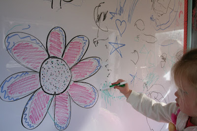We all ended up in the wendy house for the afternoon. My husband traced the girls outlines to they could fill them in with faces and clothes...