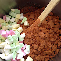As I mentioned above, it's a very simple recipe which requires half the ingredients listed in the Little Kitchen Marshmallow Balls recipe. There are also two simple tasks which will ensure your slice is perfect. 1. Don't use a blender to crush your biscuits. I recommend a rolling pin and a large clean snap lock bag (or similar). You want some chunks of biscuit left in there to give the slice a bit of texture and crunch. You don't want it all blitzed to powder. And 2. Don't put the Eskimo lollies in whole. Cut them down the middle and then 4 or 5 times width ways. This will ensure small and evenly distributed colours through out the slice rather than unattractive big chunks.
