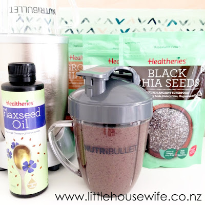 {CHIA SEEDS} These teeny little ancient grains are a powerhouse of goodness. Chia seeds are high in omega-3 fatty acids, dietary fibre and essential minerals magnesium and calcium. You can use chia seeds in almost everything but I find them excellent in smoothies as they can hold up to 12 times their weight in liquid meaning you'll stay fuller for longer. I enjoy using Healtheries Chia Seeds which are available in black, white or ground varieties. The Healtheries range also includes 100% Flaxseed Oil which is another great source of omega-3 fatty acids and dietary fibre and is a great alternative to LSA. I like to alternate between flaxseed oil and LSA. The recipe for this green smoothie is a handful of home grown kale, half an orange, 1/2 cup Oob Organic blueberries, one medjool date, two tablespoons of Healtheries white chia seeds, one tablespoon of Healtheries flaxseed oil and topped up with Blue Diamond Almond Breeze unsweetened vanilla almond milk. Serves 2.