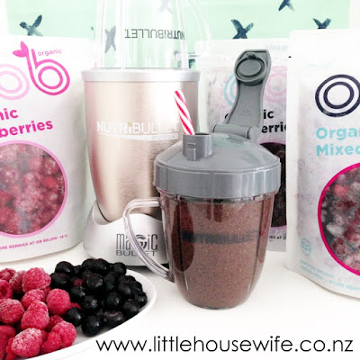 {BERRIES} Not to be left out of yesterday's post about fruit, but berries needed a special post all of their own. Berries are amazing! They may be little but they are abundant in antioxidants. Tailor Skincare have written a fabulous article on their blog about free radicals and how antioxidants fight their damage which is well worth reading. While all berries are excellent free radical fighters, blueberries are said to be particularly good at fighting free radical damage. And it was recently discovered that while the high antioxidant levels in blueberries are said to help with your eyesight, cardiovascular system and memory, blueberries do all of those things in even higher doses when they're frozen! Unfortunately the fresh berry season in New Zealand is quite short so we have to rely on frozen berries to get our berry boost for most of the year. One of my favourite brands is Oob Organic which harvest only the best, highest quality organic berries they can find both locally and internationally. Their range includes organic blueberries, organic raspberries and organic mixed which contain blueberries, raspberries, strawberries and blackberries. Of course this smoothie is technically still a green smoothie but it has changed to a lovely deep red due to a handful of Oob Mixed Berries being added into the mix. The recipe for this green smoothie is a large handful of homegrown spinach and kale, half an orange, half a banana, half a cup of Oob Organic mixed berries, two tablespoons Healtheries white chia seeds and topped up with King Island coconut water.