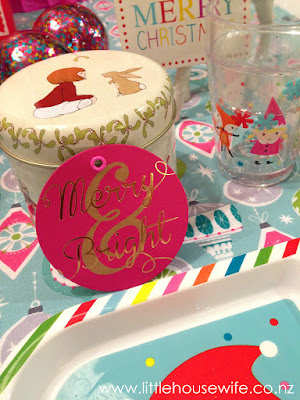And inside the Belle & Boo Christmas Tin was a wooden Belle on a carousel horse, a wooden Boo and a personalised wooden bauble from Love from Seventeen. The pink "Merry & Bright" gift tags are from Bed Bath N Table.
