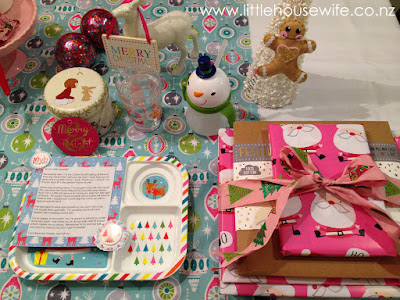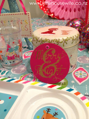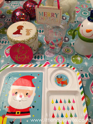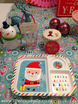 This was Maisie's side of the table. The sectional plate, glitter tumblers and snowman straw cups were all from Kmart.