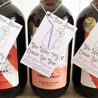 This year I'm giving each of our kindergarten teachers a beautiful hand crafted bottle of small batch Soda Press Co Soda Syrup with a little "I'm Soda-Lighted" gift tag I made in Photoshop. Loving those candy cane striped bottles of Raspberry & Mint Soda Press Co Syrup. How festive!